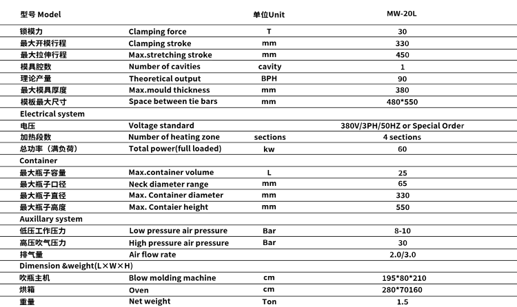 MW-20L 半自動(dòng)吹瓶機(jī)